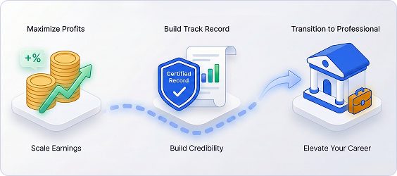 Maximize profits, establish a certified track record, and potentially transition into professional fund management.
