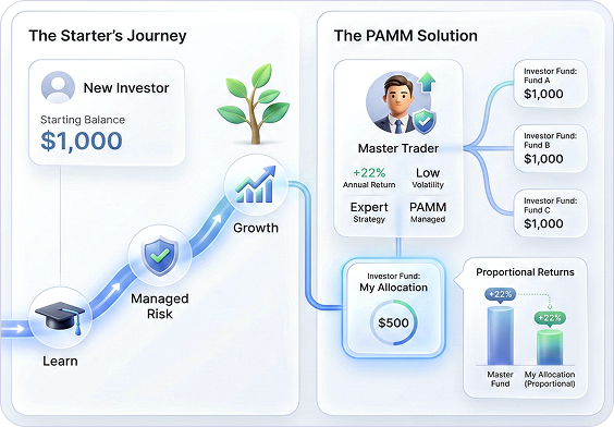 If you're new to trading and seeking opportunities to grow, our PAMM solution is perfect for you. As an investor, you can allocate funds to experienced traders and benefit from their expertise under a consolidated account.